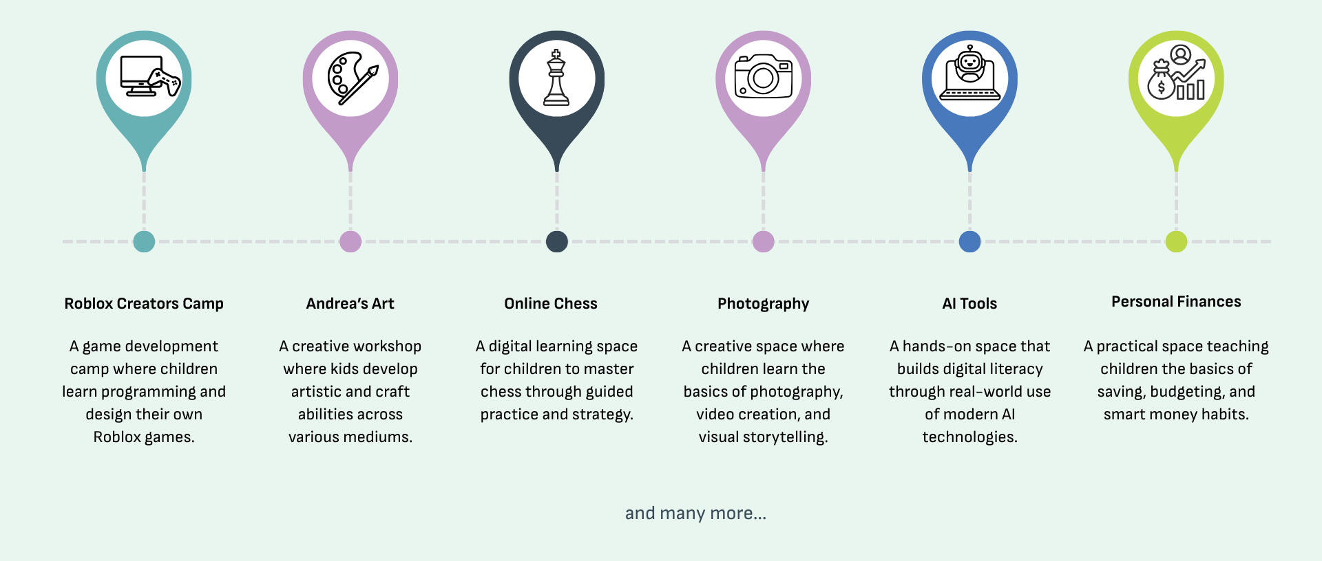 One subscription opens the door to a wide range of interests — from coding and languages to crafts and music — giving children the freedom to explore their interests in one place.With no extra charges and minimal scheduling stress, families save time and money while kids discover what truly excites them. No cross-town commutes, no juggling multiple programs — just more time spent supporting and celebrating their growth.